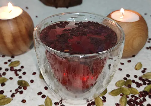 آب که جوش آمد، مقداری سماق و هل و گل گاو زبان را در قوری بریز و با آب جوش ترکیب کن و بگذار روی بخار آب تا دقایقی دم بکشه و بعد حدود 15 تا 20 دقیقه نوش جان کن.