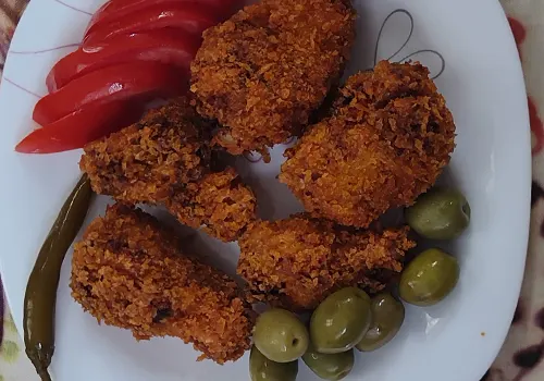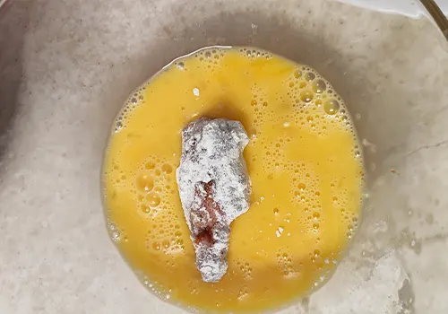 - برای داشتن یک لایه سوخاری خوب به خوبی در آرد سفید و تخم مرغ غلت بده